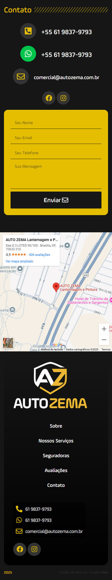 A criação da landing page desenvolvida pela Simples Ideia para a AutoZema é uma ferramenta de vendas poderosa. O design foi cuidadosamente elaborado para transmitir a seriedade, a confiança e a expertise da equipe. A estrutura da página guia o visitante por um funil de conversão otimizado. Começa com uma chamada de impacto, seguida pela apresentação dos serviços de forma clara e organizada, com ícones e breves descrições. O texto é persuasivo e ressalta os diferenciais da AutoZema, como a tecnologia de ponta, a mão de obra qualificada e a garantia dos serviços.