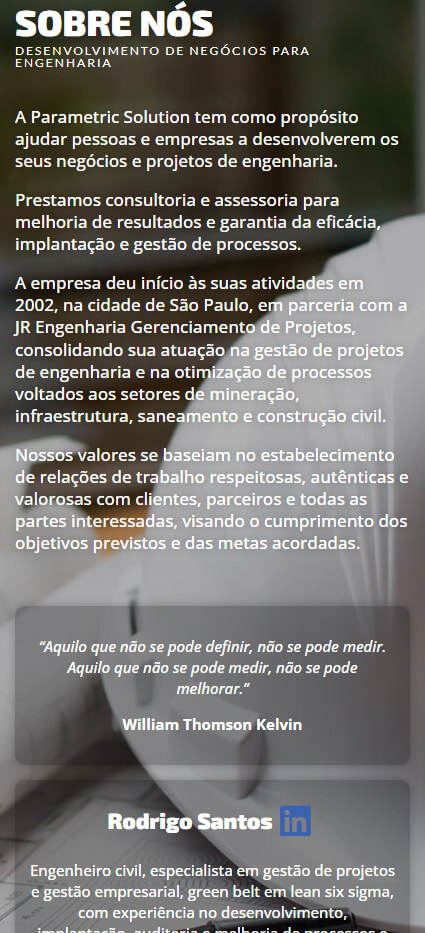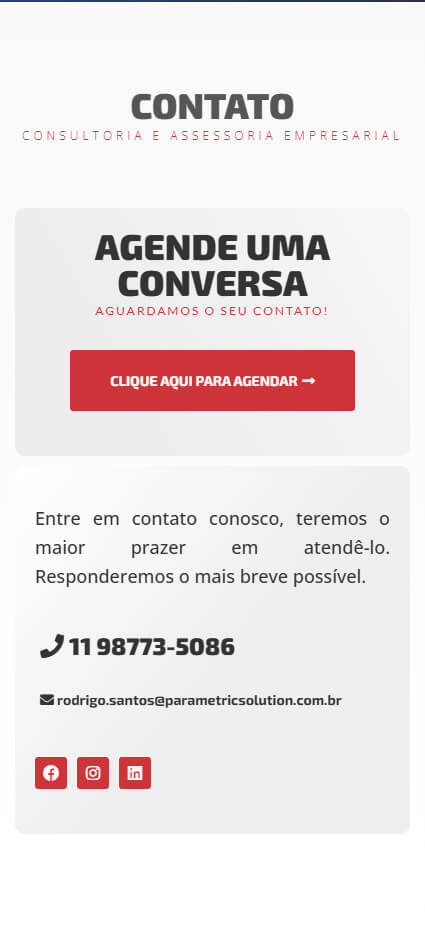 Em resumo, a criação de landing page da Parametric Solution não é apenas um site. É uma máquina de geração de negócios que trabalha 24 horas por dia, 7 dias por semana. Ela permite que a empresa mensure o retorno de seus anúncios online de forma precisa e, o mais importante, a posiciona como uma autoridade no mercado de consultoria empresarial. A página é o ponto de contato ideal para atrair, educar e converter clientes, impulsionando o crescimento da Parametric Solution de forma sustentável e previsível.