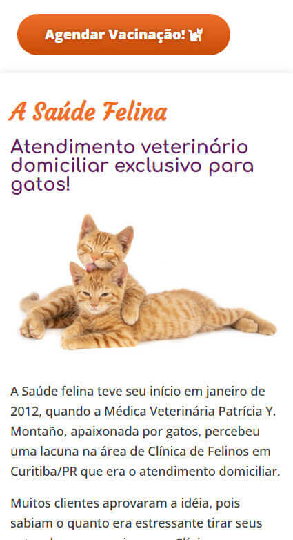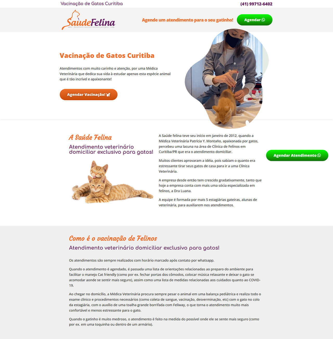 Criação de Landing Page para Veterinárias. A Simples Ideia, agência de design e internet, criou um projeto de sucesso para a Saúde Felina Veterinária de Curitiba. Com uma Landing Page que transmite carinho e profissionalismo, mostramos a sua dedicação aos pets. Destaque seus serviços, seu conhecimento técnico e suas soluções de forma clara. Invista em uma página que realmente captura leads e impulsiona o seu negócio.