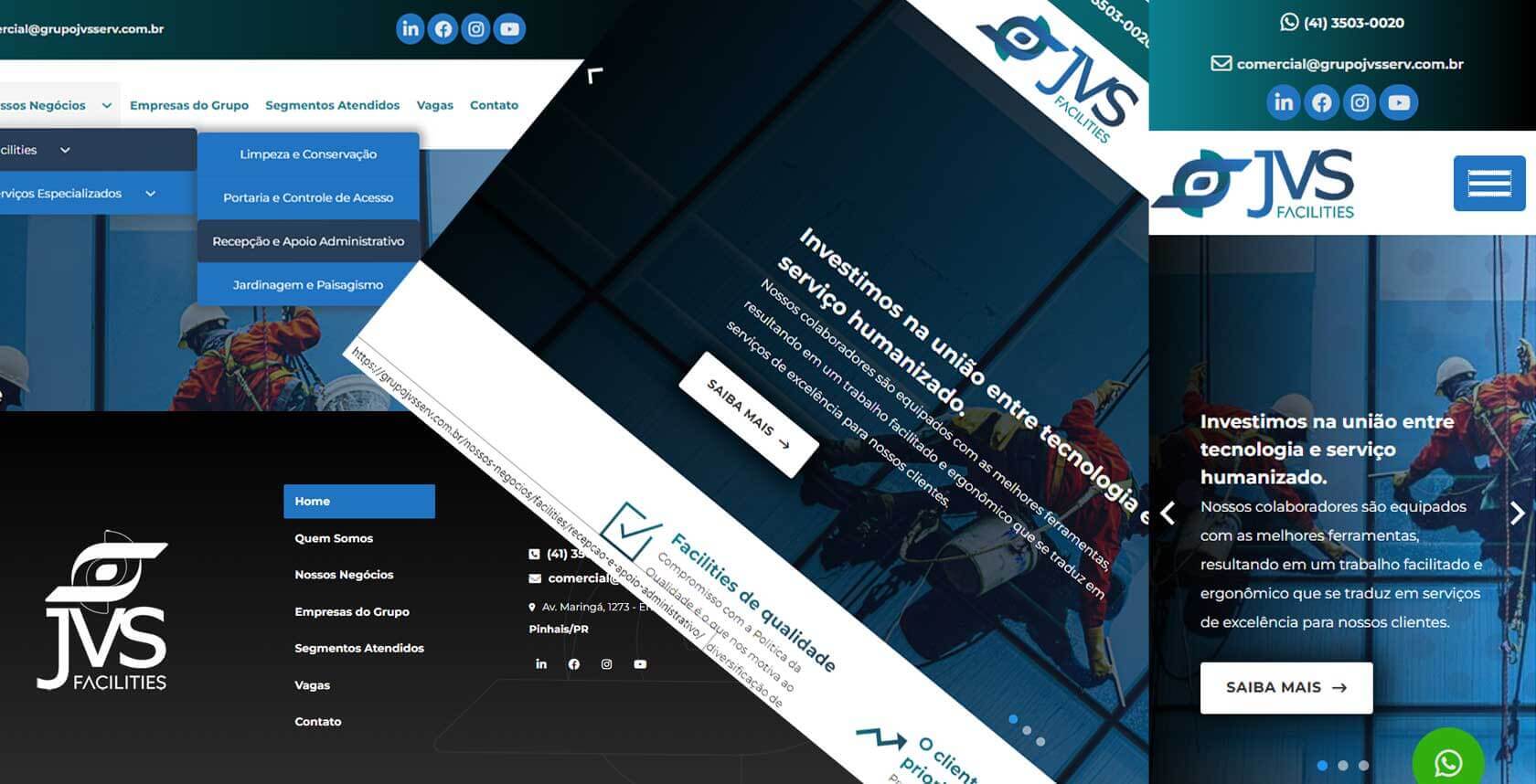 Crie uma presença digital robusta, inspirada na excelência e organização do site da JVS Serviços de Facilities. A criação do site da JVS é uma vitrine ideal: profissional, com navegação intuitiva e foco claro nos seus serviços e diferenciais. Transmita confiança e autoridade para converter visitantes em clientes. Invista agora na plataforma que reflete o padrão de qualidade do seu negócio.