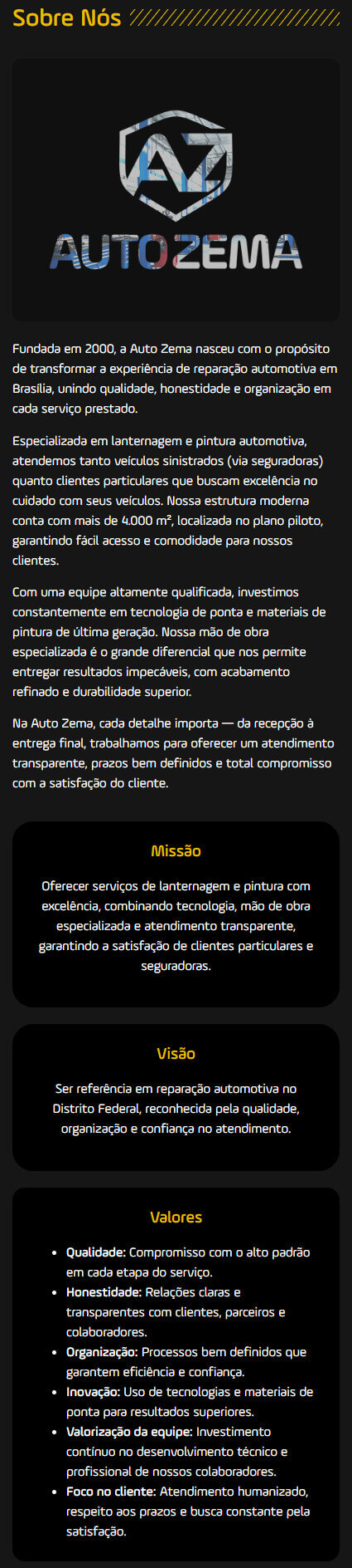 Em resumo, a landing page da AutoZema não é apenas um site. É uma estratégia de negócios digital, uma ferramenta de marketing e vendas que posiciona a empresa como líder no segmento automotivo de Brasília, atraindo clientes, fortalecendo a marca e impulsionando o crescimento de forma escalável e eficiente.