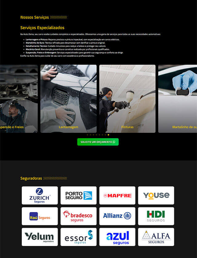 A necessidade da criação de landing page para a AutoZema se justifica pela natureza do negócio e pelo comportamento do consumidor moderno. Diferente de um site institucional, que oferece uma visão ampla da empresa, a criação da landing page foi projetada com um único foco: a conversão. O público que busca por “conserto de suspensão”, “reparos em freios” ou “funilaria e pintura” precisa de uma resposta direta e imediata. Eles querem saber se a empresa oferece o serviço que procuram, ver a qualidade do trabalho e ter um meio fácil para entrar em contato e agendar o serviço.
