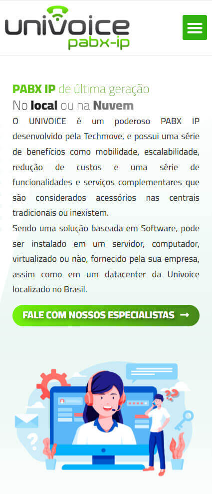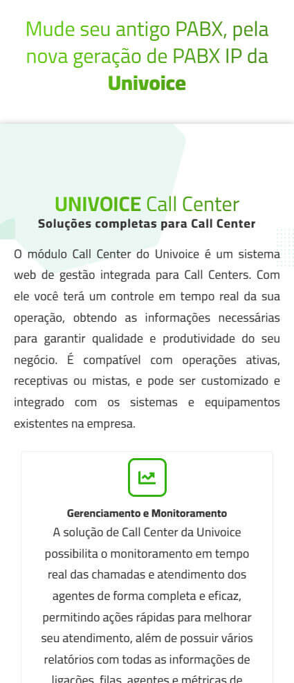 O objetivo principal deste projeto era claro: obter mais leads qualificados e converter esses visitantes em clientes. Para alcançar isso, a criação de landing page foi construída com princípios de design e copywriting que se aplicam especificamente ao mercado de tecnologia. O layout foi projetado pela Simples Ideia para ser moderno e profissional, com uma estética que remete à inovação e à eficiência. O texto foi escrito para ser persuasivo e focado em benefícios, abordando as “dores” do cliente e apresentando os produtos e serviços da Univoice como a solução ideal.