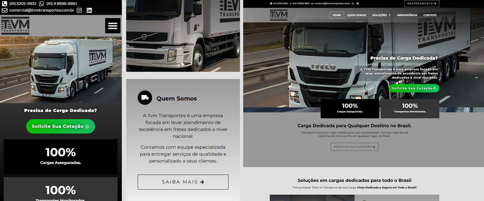 A justificação para a necessidade da criação de site responsivo e amigável aos mecanismos de busca como o Google e o Bing é a garantia de visibilidade. Apenas ter um site não é suficiente se ele não for encontrado pelo público certo. O website da TVM Transportes foi otimizado com técnicas de SEO (Search Engine Optimization) para que ele apareça nas primeiras posições quando um potencial cliente busca por “fretes dedicados”, “transporte a nível nacional” ou “empresa de logística”. Além disso, o design responsivo garante que a experiência do usuário seja fluida e sem atritos, seja ele acessando de um desktop, tablet ou smartphone. Uma boa experiência mobile é crucial para a captação de leads, pois grande parte do tráfego online hoje vem de dispositivos móveis.