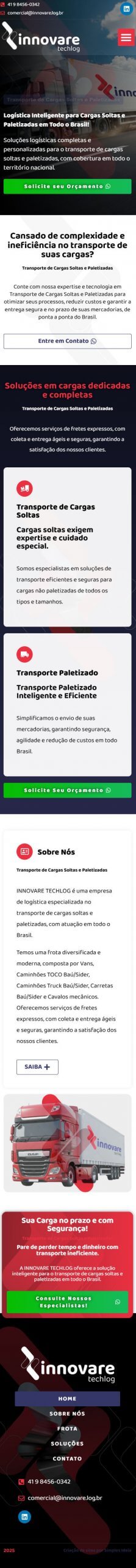 A necessidade da criação de site para a INNOVARE TECHLOG se justifica pela mudança no comportamento do cliente moderno. Sejam empresas ou indústrias buscando soluções de transporte, a pesquisa por um parceiro de logística começa, majoritariamente, na internet. O cliente busca por informações sobre a empresa, sua expertise no transporte de cargas soltas e paletizadas, sua área de atuação (que, no caso da INNOVARE TECHLOG, é o Brasil inteiro) e, o mais importante, um meio fácil e confiável para solicitar um orçamento ou tirar dúvidas. A criação de site bem-estruturado é a ferramenta perfeita para atender a todas essas necessidades de forma rápida e profissional.