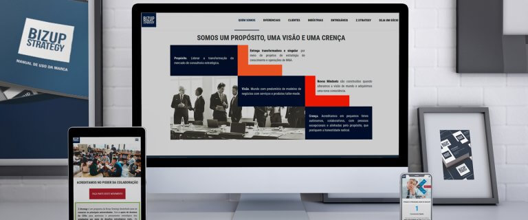 Projeto de Identidade Visual para Bizup Strategy que Simboliza Pausa, Estabilidade e Reflexão Estratégica